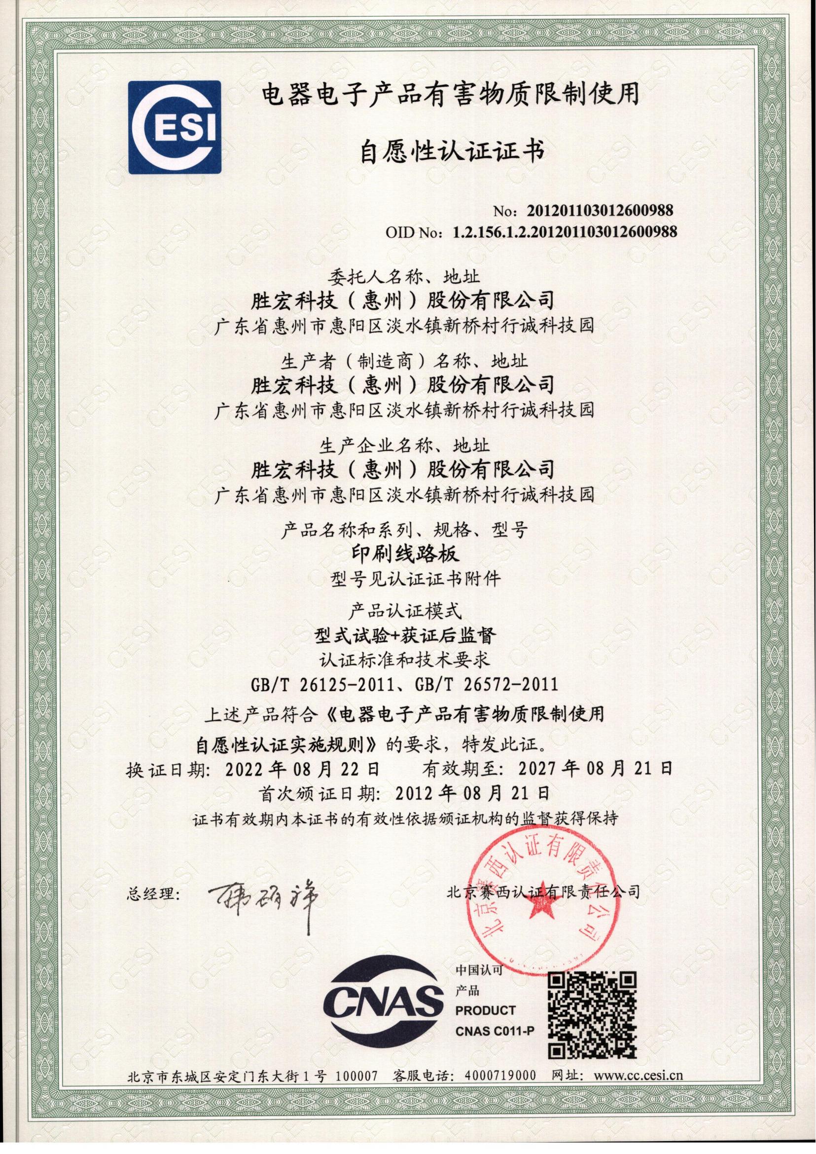 國推RoHS證書